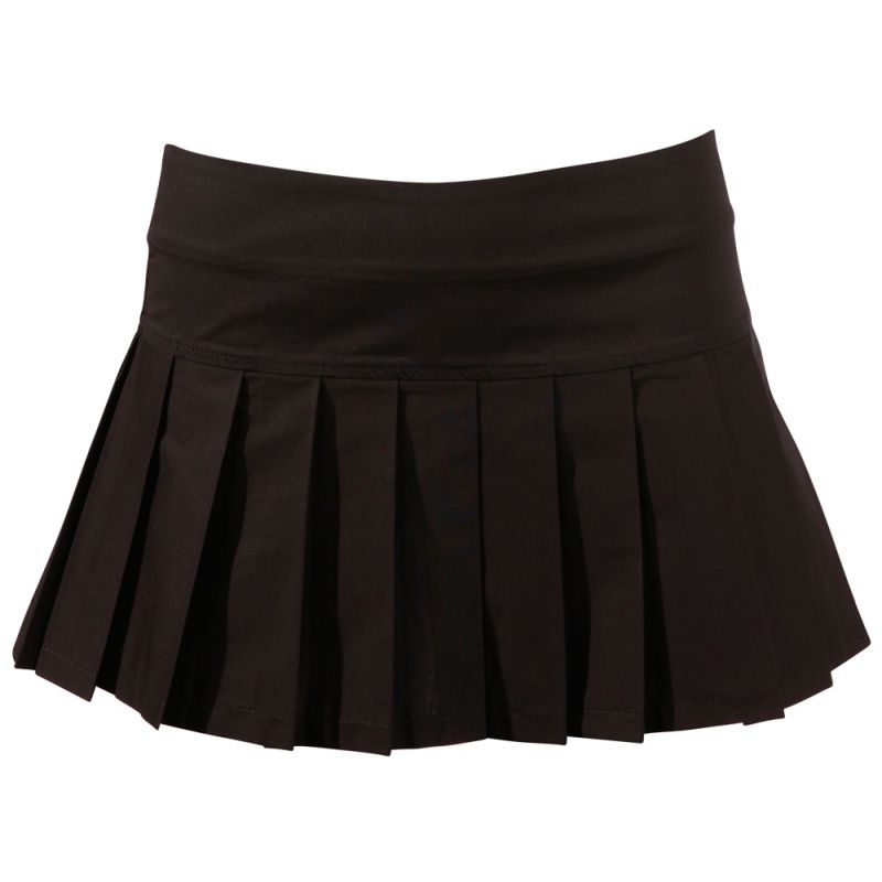 Schwarzer Falten-Minirock mit seitlichem, kleinen Reißverschluss.