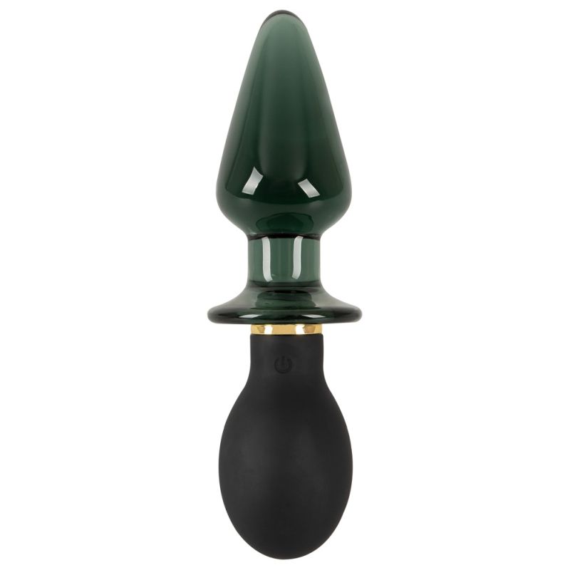 Formschöner Double-ended Butt Plug with Vibration von ANOS im hochwertigen Material-Mix, der alle Vorteile eines Silikon- und eines Glas-Vibroplugs in sich vereint. Beidseitig anal bespielbar: Eine Seite mit abgerundetem seidig softem Silikon-Plug, andere Seite mit massivem glatten, konisch zulaufendem Glas-Plug. In der verjüngten Mitte mit breitem Stopper, der ein Hineinrutschen der Plugs sicher verhindert.
