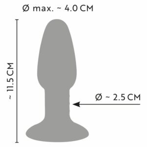 Gesamtlänge 11,5 cm, Einführlänge 10 cm, Ø max. 4 cm, Verjüngungs-Ø 2,5 cm.