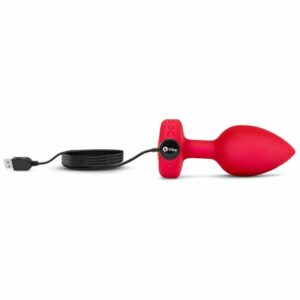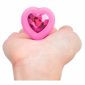 Konisch geformter Vibro-Analplug vibrating heart von b-Vibe mit funkelndem Herz-Schmuckstein im Stopper. Der herzförmige Stopper sorgt für die sichere anale Anwendung ohne Hineinrutschen. Somit ist auch längeres Tragen möglich, wobei der Anus herzlich geschmückt ist.