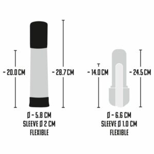 Sleeve: Einführtiefe 14 cm, Innen-Ø 1 cm, dehnbar.