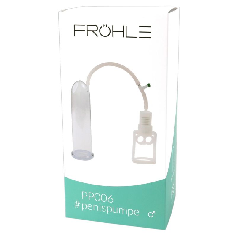 Penispumpe aus glasklarem, festem Material. Ausgestattet mit einer Kolbengriffpumpe inklusive Schlauch und Ventil, die mit einem Unterdruck bis zu 600 Mbar für ein intensives Saugerlebnis sorgt. Das hierbei entstehende Vakuum ermöglicht im Handumdrehen eine Pracht-Erektion. Regelmäßig angewendet, kann die männliche Potenz dauerhaft verbessert werden – auch bei erektiler Dysfunktion. Kann zur weiteren Unterstützung der männlichen Potenz auch mit der FRÖHLE Liebes- und Powermanschette kombiniert werden. Inklusive Schlauchmanschette und Steckmanschette.