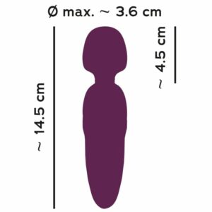 Gesamtlänge 14,5 cm, Massagekopf mit Hals 4,5 cm lang, Massagekopf-Ø 3,6 cm.