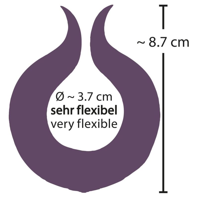 Gesamtlänge 8,7 cm; Ringform-Ø 3,7 cm, sehr flexibel. 56 g. Silikon, PU, ABS.
